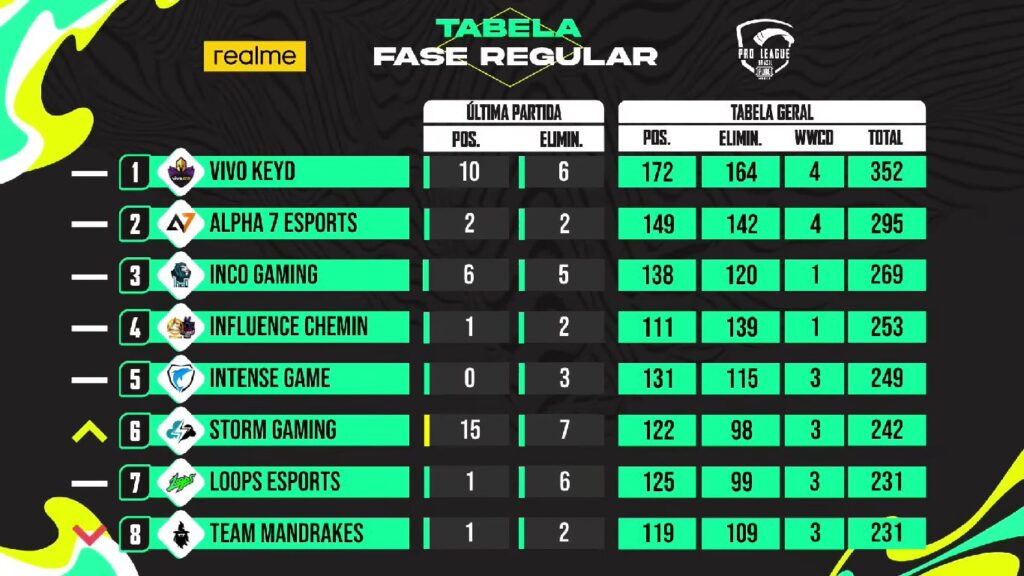 Alpha 7, Vivo Keyd e Influence Chemin não brigam apenas pelo título, mas pelos pontos que garantem 2 vagas no PUBG MOBILE Global Championship 2022. As três equipes já representaram o Brasil em competições internacionais e a Influence Chemin é a atual campeã das Américas. Ainda sobre os times da PMPL Brasil 2022, a iNCO Gaming vem conquistando seu espaço no TOP 3 da competição, chegando aos poucos nessa briga entre gigantes. Outro time que tem se destacado é a Storm Gaming, que apesar de ainda não possuir um histórico de títulos, se mantém firme na competição após terminar as classificatórias no 2º lugar.