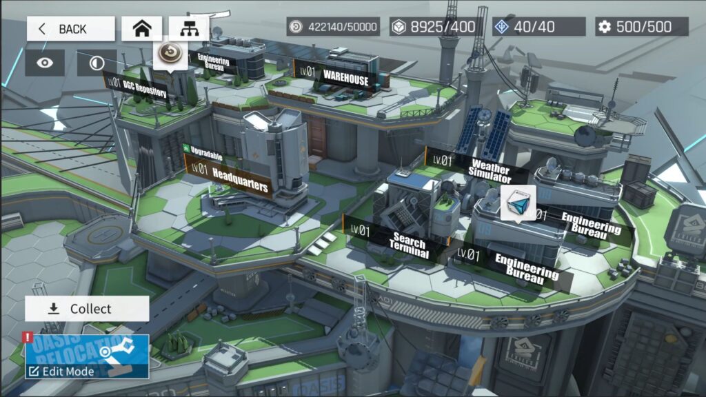 - Construa o seu oásis: Todo mundo precisa de um lugar para chamar de lar, e é exatamente isso que o Professor “enviou” para a rede em nuvem na forma da base do Oasis. Colete materiais em sua jornada para melhorar instalações, construir dormitórios e materiais de origem passivamente para buffs e vantagens que podem ser usados na próxima batalha.