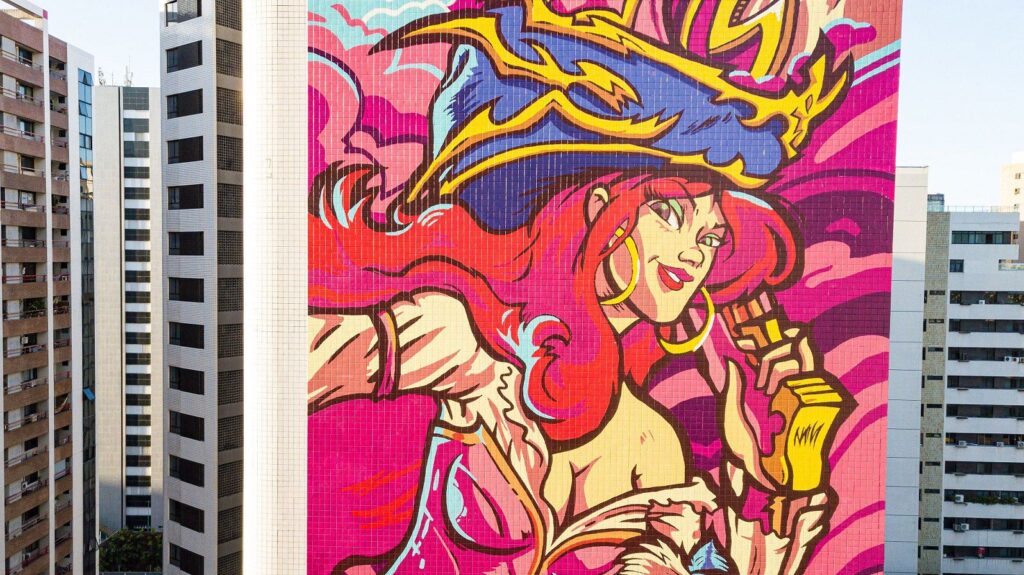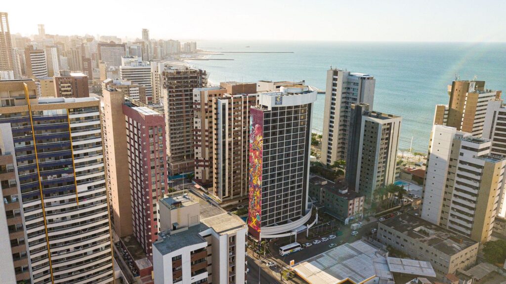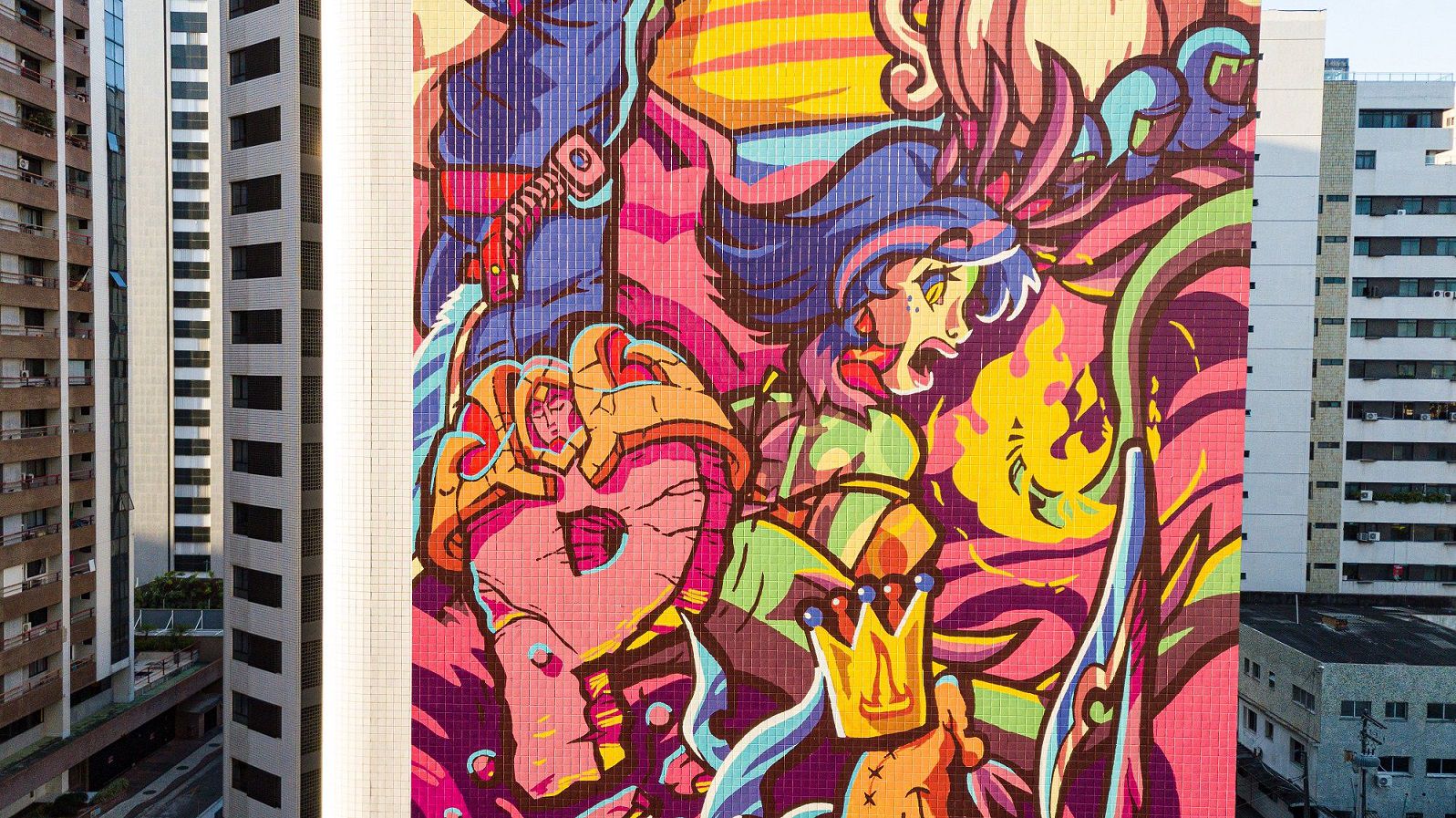 O local escolhido foi um prédio na região da Beira-Mar de Fortaleza, que fica entre a Rua Frei Mansueto e a Avenida Abolição. A obra tem aproximadamente 700m² e ficará no local por 1 ano. Otávio Rodrigues, mais conhecido como Otas, é o criador da obra e teve um baita desafio de trabalhar nas alturas, mas com uma vista incrível. “Nunca havia feito trabalho nessa altura, mas pensar em contemplar esse combo maravilhoso me fazia encarar até os ventos fortes lá do alto. A vista lá de cima era linda, de um lado se vê a cidade e do outro o mar…quer escritório melhor que esse?”, comenta Otas.