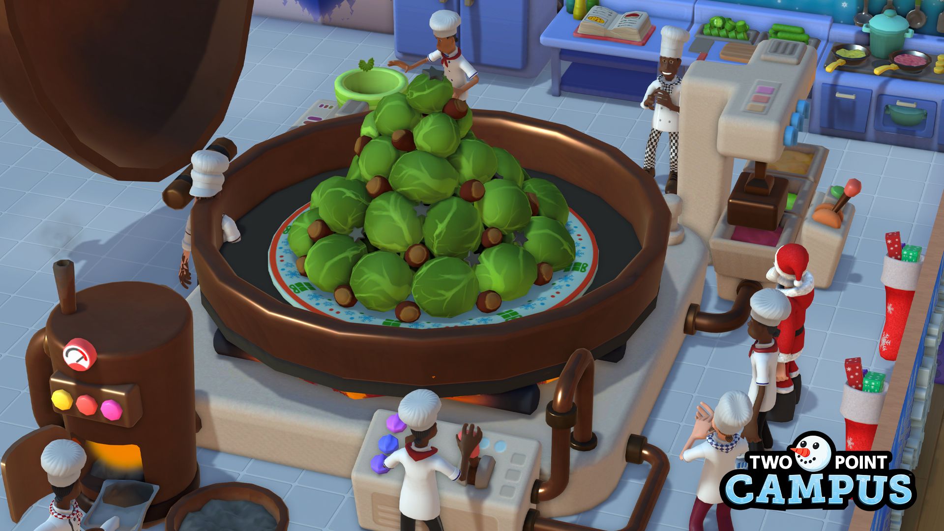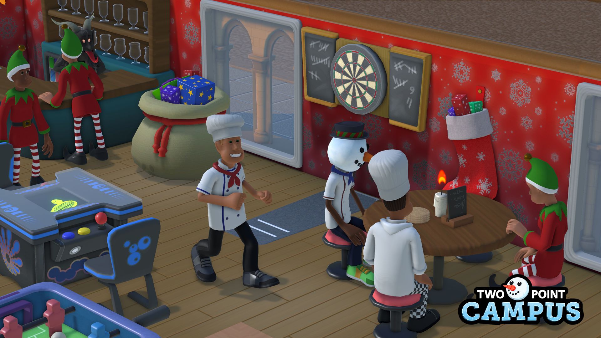 O melhor de tudo, mesmo se você estiver muito ocupado para celebrar a temporada conosco, todos os itens, fantasias e o nível do modo de desafio permanecerão após o período do evento. Todos os seus itens festivos funcionam até mesmo no DLC Space Academy do Two Point Campus, que já está disponível em todas as plataformas.