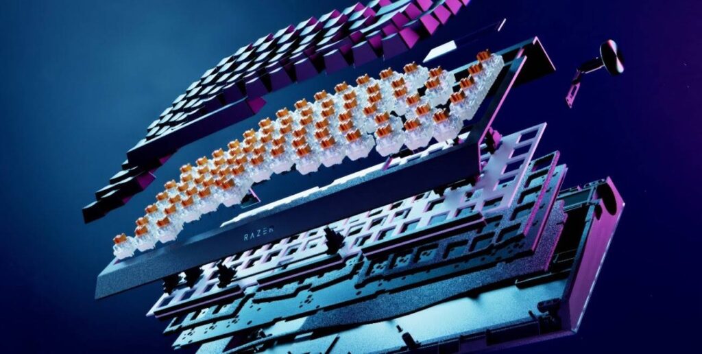 Design hot-swappable com switches táteis mecânicos laranja de terceira geração Razer pré-instalados