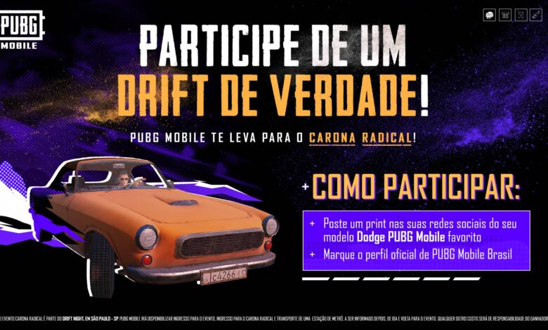 Para celebrar a ocasião, o PUBG MOBILE está sorteando dois ingressos para o Drift Night, que incluem transporte de ida e volta dentro da cidade de São Paulo. Os interessados podem participar do sorteio através do perfil oficial do jogo no Instagram. A participação no evento é aberta ao público mediante aquisição de ingresso antecipado ou na porta. A participação no sorteio também é livre, desde que o participante resida em São Paulo ou tenha disponibilidade para estar na cidade na data do evento, conforme as regras especificadas.