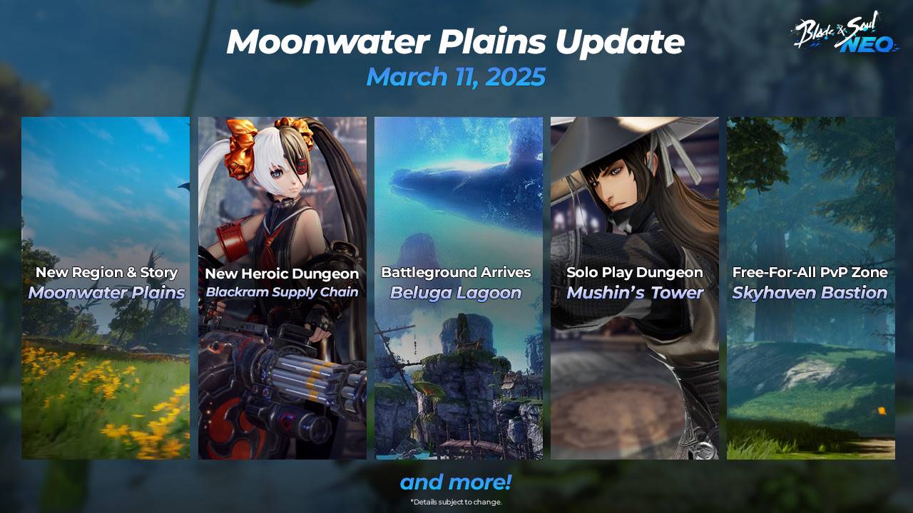 As novidades não param por aí! Nos próximos meses, Blade & Soul NEO também irá receber as expansões Moonwater Plains – Partes 2 e Parte 3, que estarão disponíveis em abril e maio. Ainda mais atualizações ao longo de 2025.