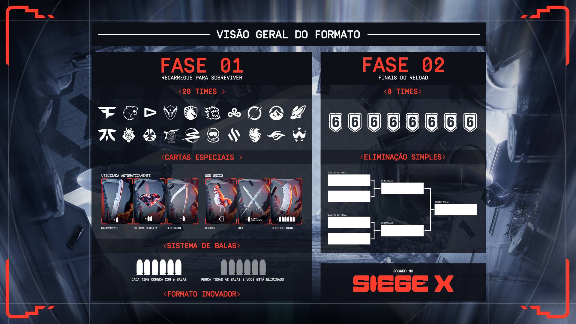 O RELOAD marca a estreia de grandes organizações no cenário competitivo do Siege X, como a gigante LOUD, que possui uma base de torcedores fanáticos. Além disso, o campeonato oferecerá um vislumbre de como as equipes jogarão ao longo do ano, com seus novos e reformulados elencos.