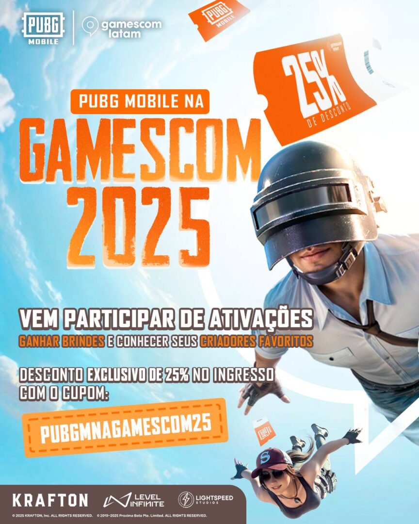 Os fãs de PUBG MOBILE também podem adquirir seus ingressos para a gamescom latam 2025 com um desconto exclusivo de 25% utilizando o código promocional “PUBGMNAGAMESCOM25” no momento da compra.