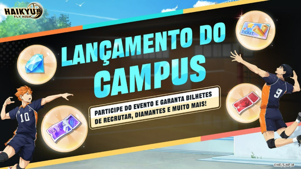Os jogadores também podem conferir diversos eventos temáticos, incluindo Lançamento do Campus e O Grande Chamariz, ambos com destaque para o protagonista SHOYO HINATA. Esses eventos por tempo limitado oferecem recursos extras como Diamantes, itens de treinamento e oportunidades para recrutar novos personagens.