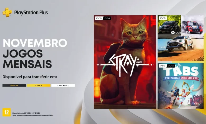 A PlayStation anunciou os Jogos Mensais de novembro para todos os assinantes do PlayStation Plus. A partir de 4 de novembro, os jogadores terão acesso a uma seleção diversificada de títulos, incluindo a aclamada aventura felina Stray, a adrenalina das pistas com EA Sports WRC 24 e o caótico simulador de batalhas Totally Accurate Battle Simulator. Essa curadoria reforça o valor da assinatura, oferecendo experiências em jogos que vão desde narrativas imersivas até esportes radicais para os consoles PS4 e PS5.
