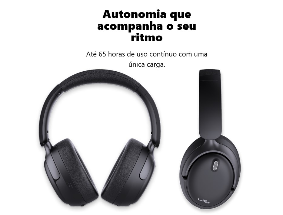 A Lity promete até 65 horas de uso contínuo com o ANC desligado, e eu posso confirmar: a bateria é um monstro! Nas minhas duas semanas de teste, só precisei carregar o H13 duas vezes. Isso é liberdade! O carregamento completo leva apenas 2 horas via USB-C.
