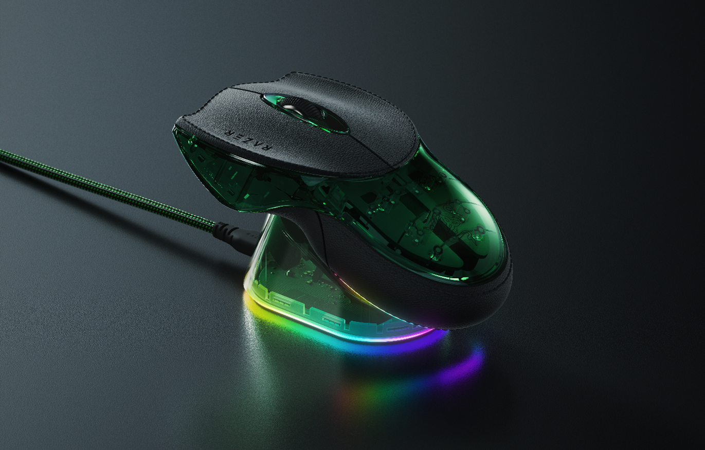 O Dock Mouse Pro incluso marca a transição dos tempos do Boomslang original, antes cabeado, para um novo ecossistema, com carregamento sem fio. Projetado como complemento perfeito ao periférico, conta com o mesmo acabamento translúcido marcante do modelo original.