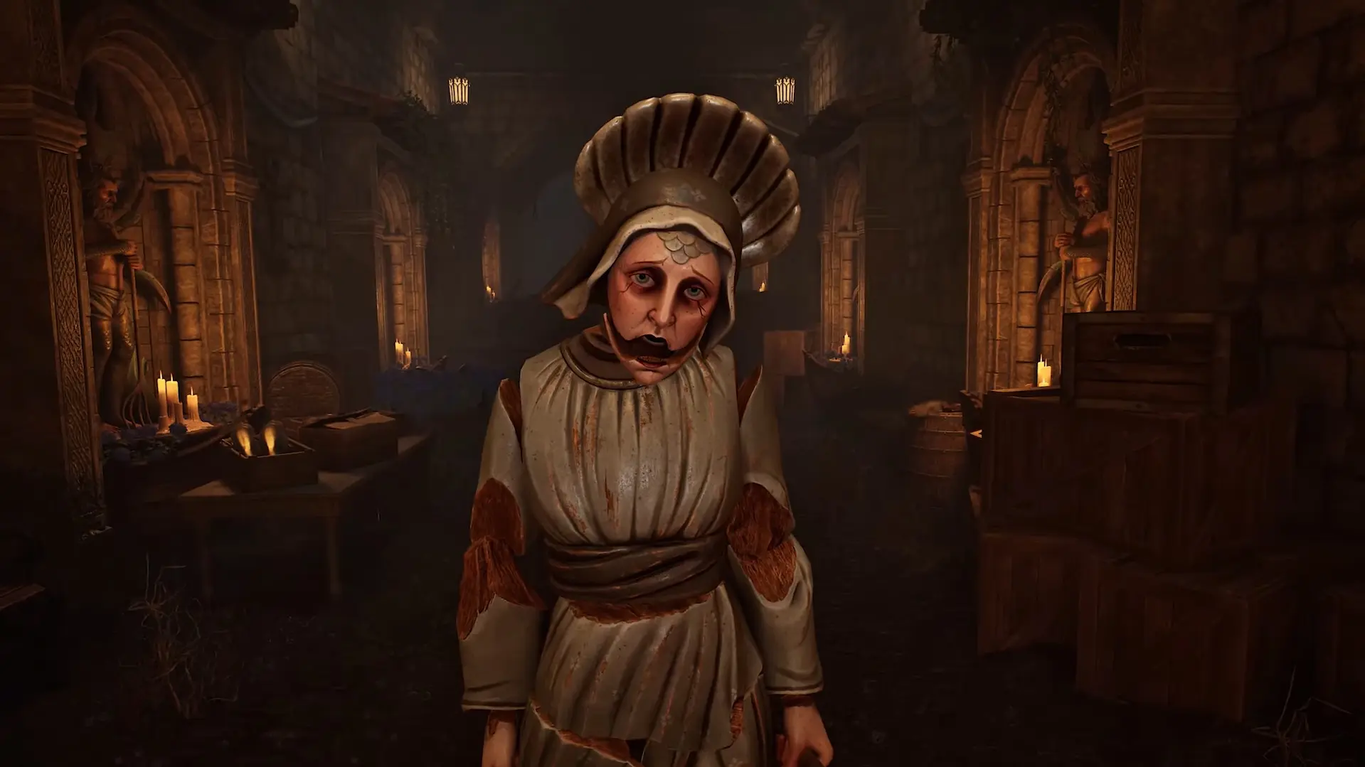 A inteligência artificial dos inimigos, no entanto, é um ponto de crítica. As estátuas, embora inicialmente assustadoras, tornam-se previsíveis e fáceis de lidar após as primeiras horas de jogo. A figura de Dolores, uma perseguidora implacável que surge em seções específicas, similar a um Nemesis, sofre com uma IA irrisória, guiando-se apenas pelo som e desistindo facilmente da caçada, o que diminui consideravelmente a tensão que deveria proporcionar. O jogo também incorpora elementos clássicos de jogos com essa temática, como um sistema de mercador,  aqui representado por La Plañidera, uma bruxa que oferece upgrades para armas e habilidades. As melhorias para armas, como velocidade de recarga e dano, são úteis, mas as habilidades para o personagem são consideradas pouco impactantes. Os puzzles, por outro lado, são um destaque positivo, sendo bem distribuídos, desafiadores e exigindo atenção e raciocínio do jogador, sem recorrer a dicas excessivas.