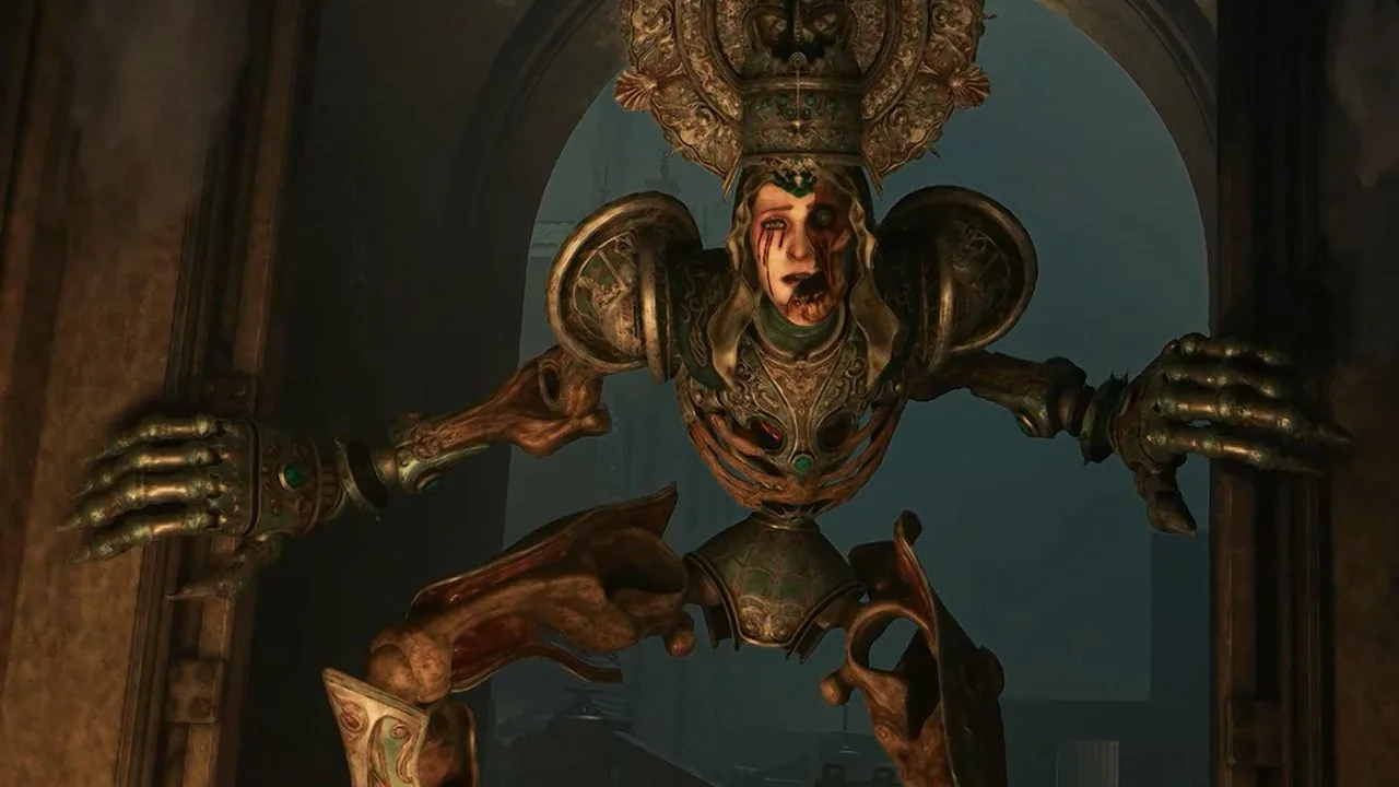 O design visual de Crisol: Theater of Idols é, sem dúvida, um de seus maiores trunfos. A Vermila Studios conseguiu criar uma estética perturbadora e imersiva, onde o folclore espanhol e a iconografia religiosa são os pilares. Os inimigos, principalmente as estátuas macabras, são visualmente impactantes, embora sua eficácia como ameaças diminua com a previsibilidade de seus movimentos. No entanto, o jogo brilha no design dos inimigos de elite, que apresentam conceitos visuais distintos, como criaturas de pedra, vidro e aquáticas, que quebram a monotonia e exigem diferentes estratégias de combate. A figura de Dolores, a perseguidora, é visualmente impressionante, uma grotesca boneca gigante que remete a figuras como Mr. X ou Lady Dimitrescu. Contudo, sua inteligência artificial limitada e a facilidade em evitá-la em muitos trechos do jogo acabam por diminuir seu impacto como elemento de terror, tornando-a mais irritante do que assustadora em certas ocasiões.
