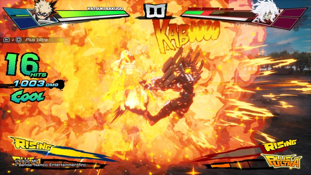 Uma das novidades que mais me chamou a atenção foi a barra de Rising. Ela enche conforme você apanha ou acerta golpes e, quando ativada, concede melhorias temporárias de força, velocidade e propriedades específicas para cada personagem. É a clássica mecânica de comeback que a gente adora, dando um gás extra nas lutas. Além disso, os ataques Plus Ultra estão de volta, com animações cinematográficas que fazem jus ao poder dos heróis e vilões. A possibilidade de trocar de personagem no meio dos combos é um diferencial, permitindo criar sequências de ataques mais longas e devastadoras, com sinergias táticas entre os Quirks da sua equipe.
