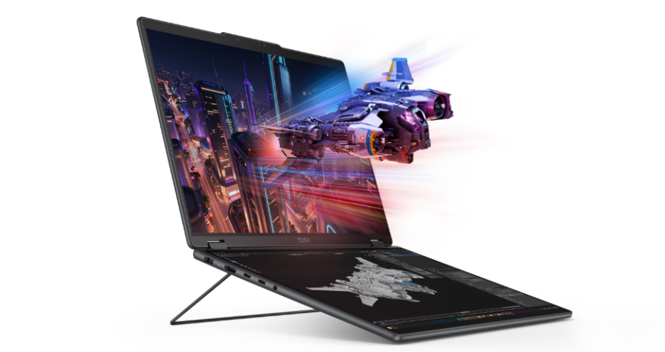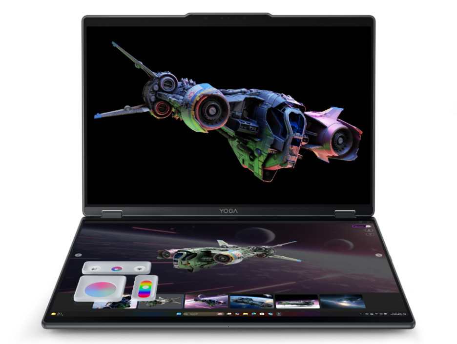 O Yoga Book Pro 3D Concept foi desenvolvido em resposta a essas tendências crescentes, projetado para permitir que criadores de conteúdo digital trabalhem diretamente em três dimensões sem equipamentos adicionais. Tudo isso graças à sua tela 3D sem óculos, que permite aos usuários visualizarem profundidade, forma e relações espaciais naturalmente na tela. O laptop possui duas telas Lenovo PureSight Pro Tandem OLED que suportam interfaces de usuário mais complexas e fluxos de trabalho detalhados.