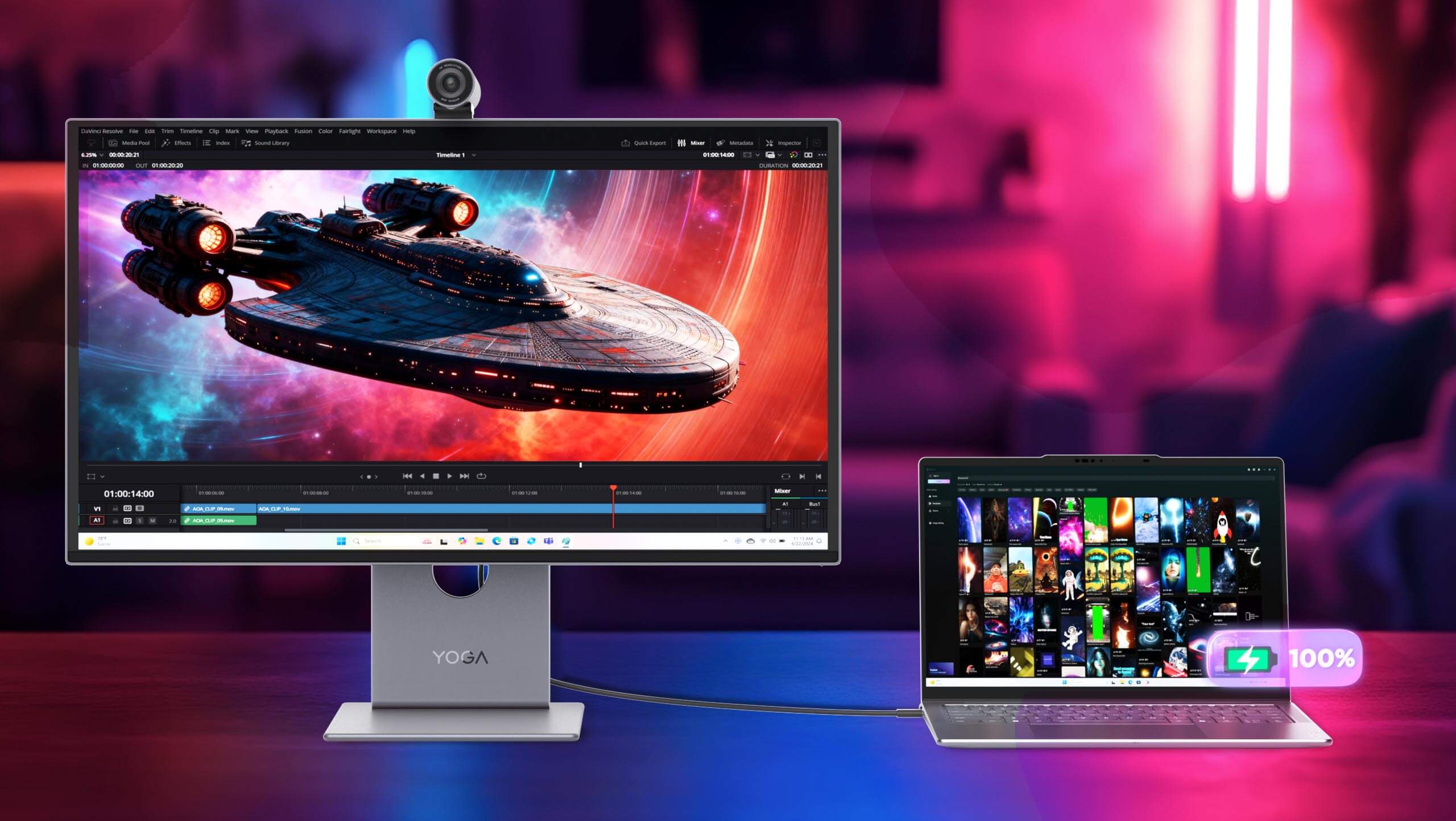 Um dos grandes diferenciais do modelo é o Yoga Pro Color Sync Mode, que sincroniza automaticamente as cores do monitor com notebooks da linha Yoga Pro, assegurando uniformidade visual entre telas sem a necessidade de ajustes manuais. A solução é ideal para fluxos de trabalho criativos que exigem fidelidade cromática.