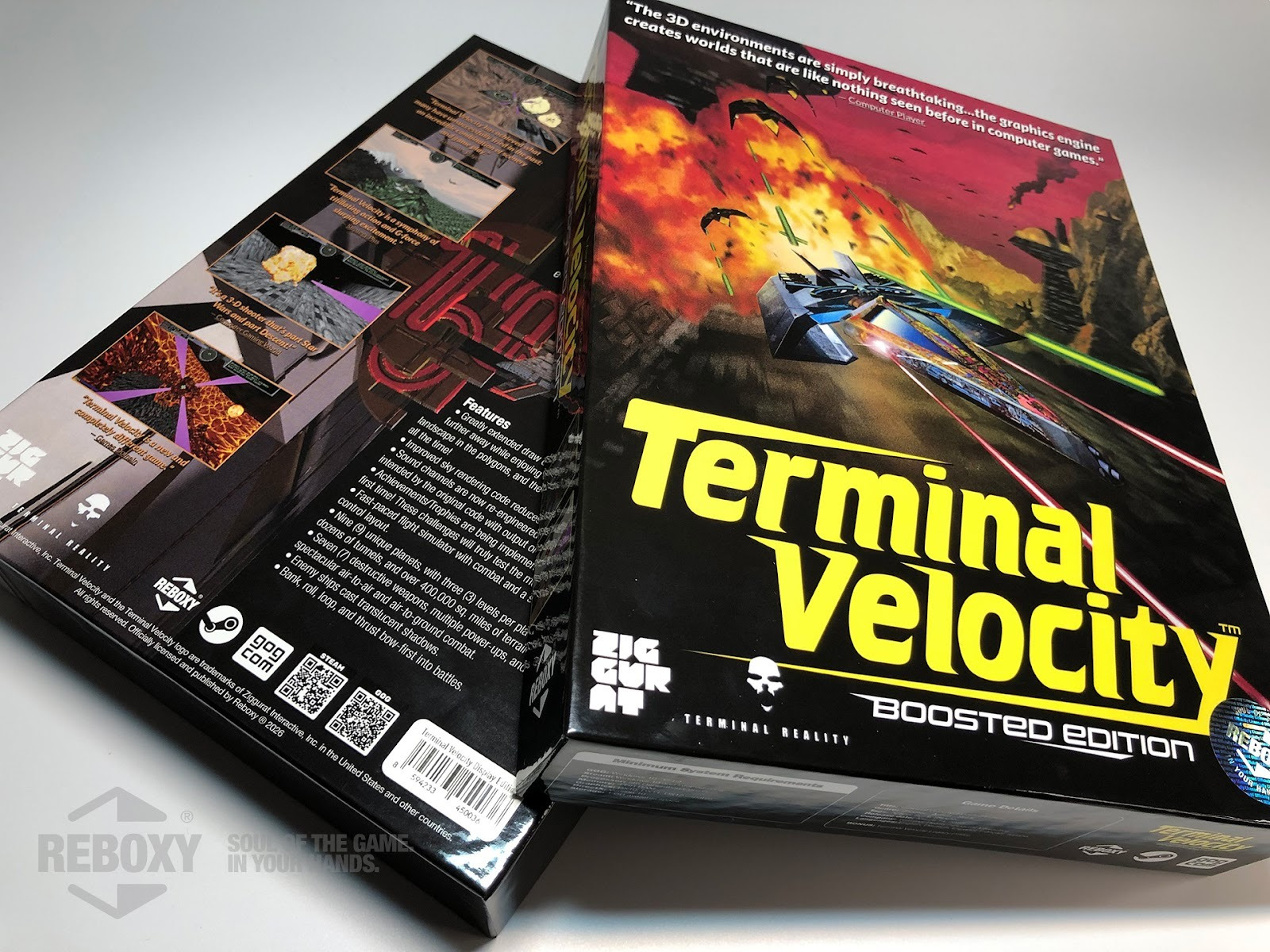 A Reboxy, especialista em edições físicas e em caixas grandes, em colaboração com a editora de jogos retrô modernos Ziggurat Interactive, tem o prazer de anunciar as versões em caixa grande do simulador de voo de combate Terminal Velocity para PC. Os fãs do icônico jogo de tiro poderão se aproximar ainda mais da ação com lançamentos físicos que incluem itens de colecionador e acesso às versões atualizada e clássica do jogo.