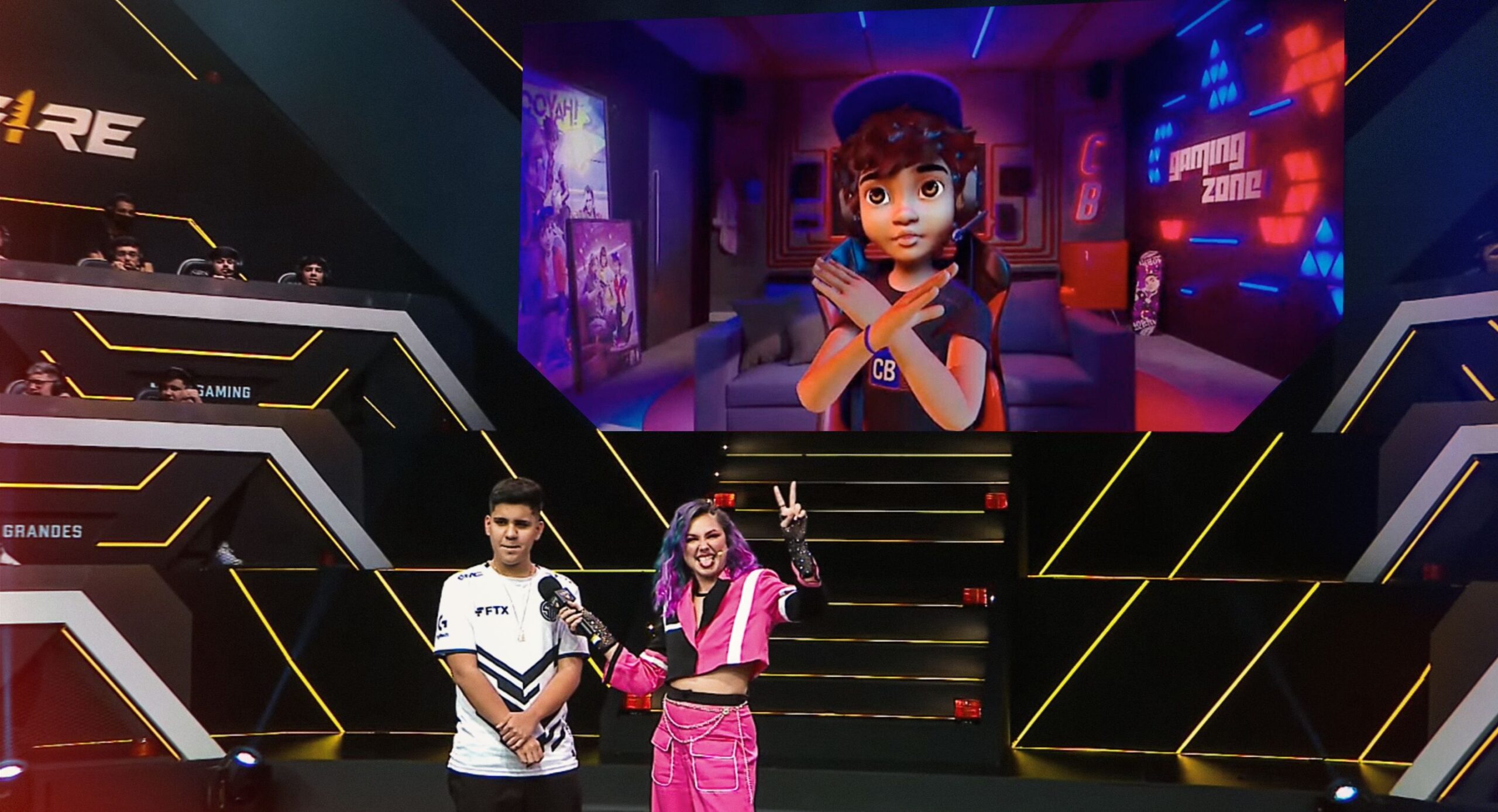 CB, da Casas Bahia, tem um dia de apresentador e repórter na final da Liga Brasileira de Free Fire